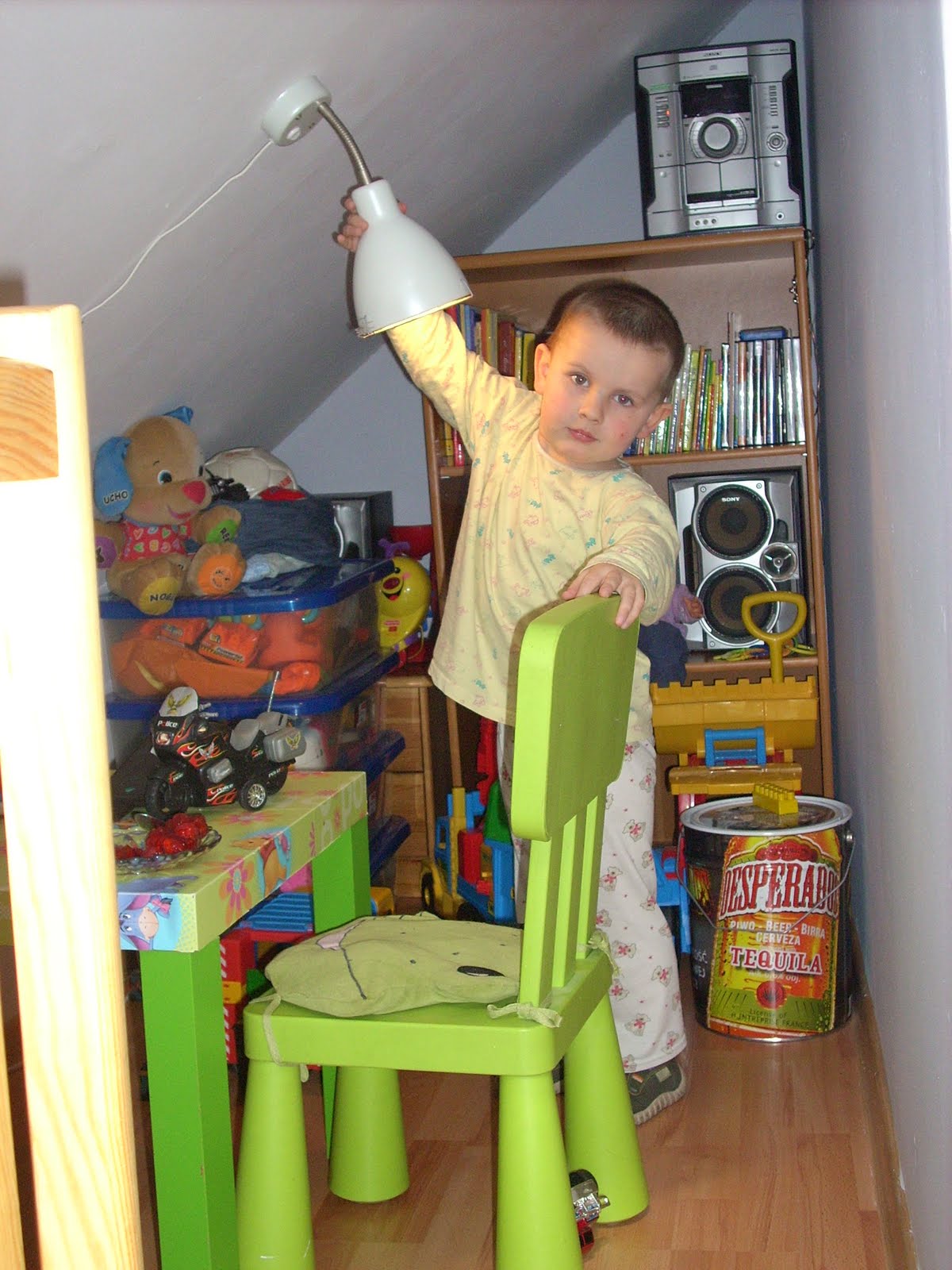 Malusio miejsca, ale jakoś daliśmy radę to ogarnąć:) I sam syncio piżamowy już wieczorową porą:) I kawałeczek wejścia i łóżeczka. Póki co młody jeszcze śpi z nami:) Ale niedługo ustąpi miejsca młodszej dzidzi. Mam nadzieję, że jutro wreszcie okaże się jaką płeć ma nasze drugie dziecko.