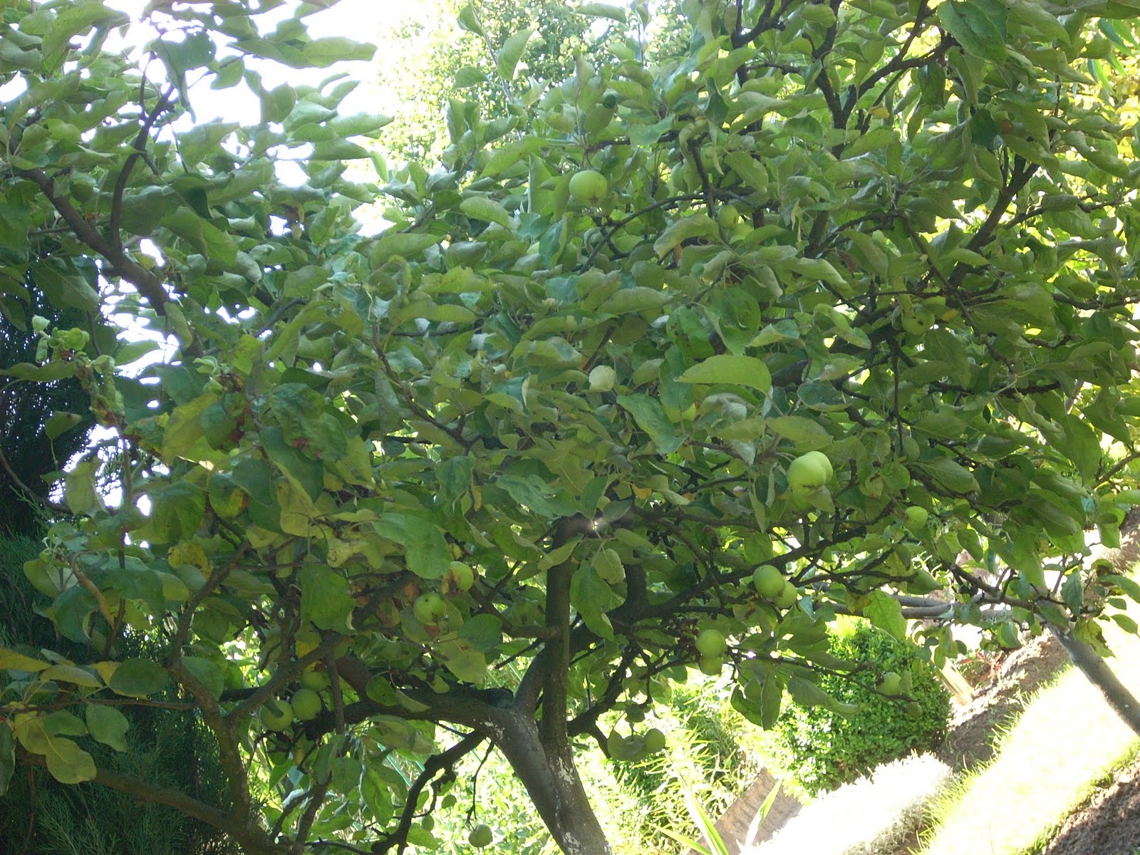 Lewa strona pełni rolę drzewiastą:) Drzewka owocowe i jakieś ozdobne cuda-słabe, zaatakowane przez choróbska, na jesień zostaną wycięte.