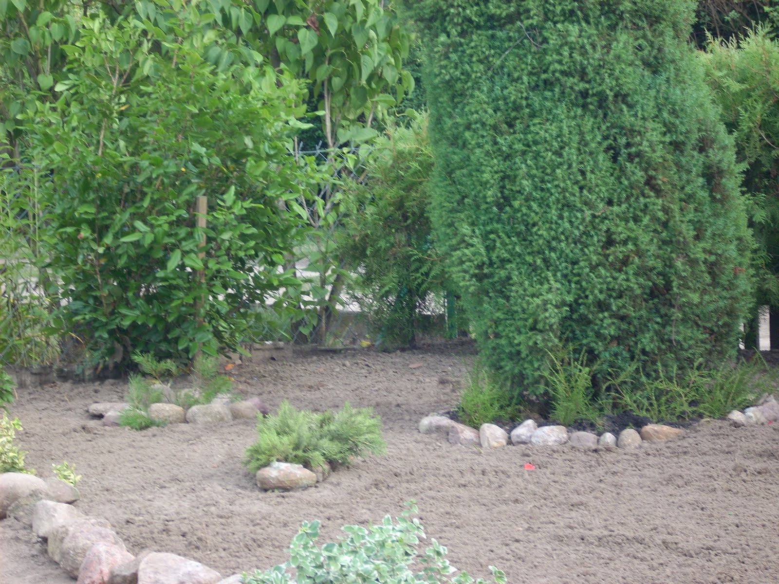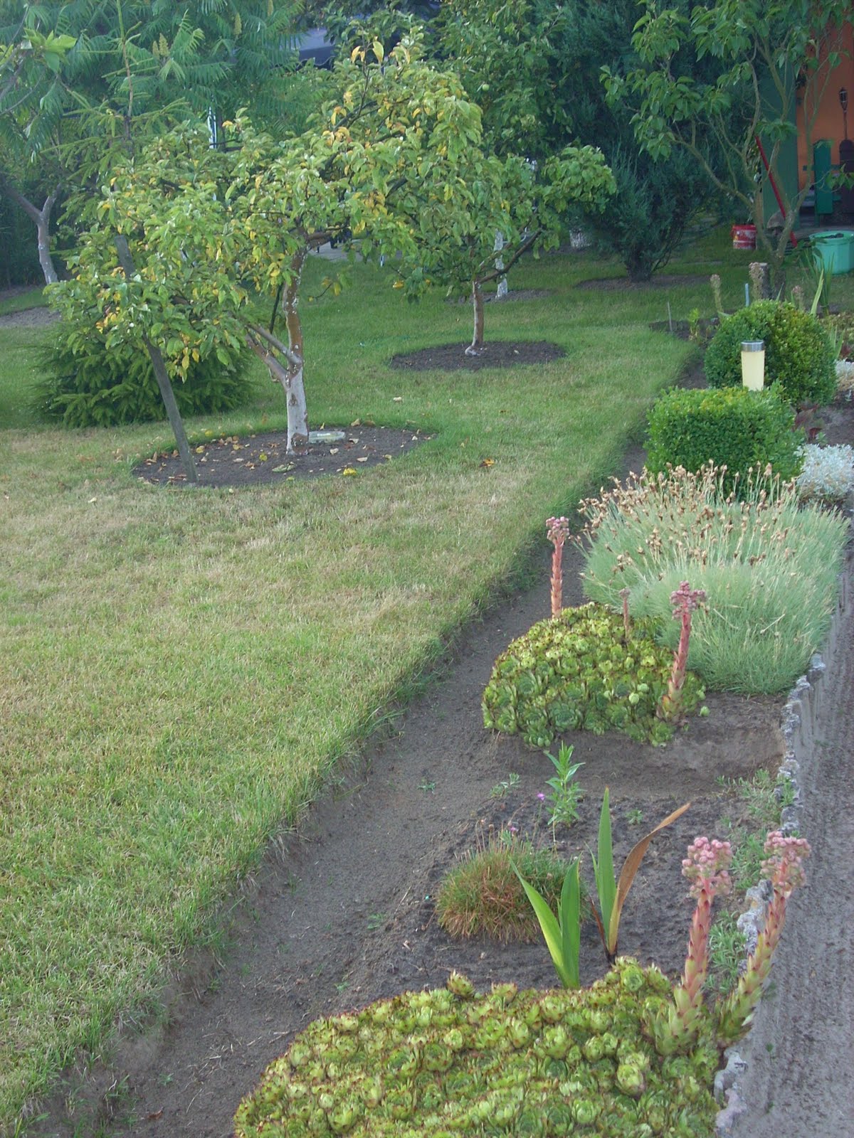 Na całej działce pełno rozchodników-wiekowych można ocenić po rozmiarach-też je w przyszłości polikwiduje-nie mam wizji na te 'boki'-chyba nasiejemy trawki i iglaków i róż i lawendy i hortensji. Póki co na ten rok tak pozostanie.
